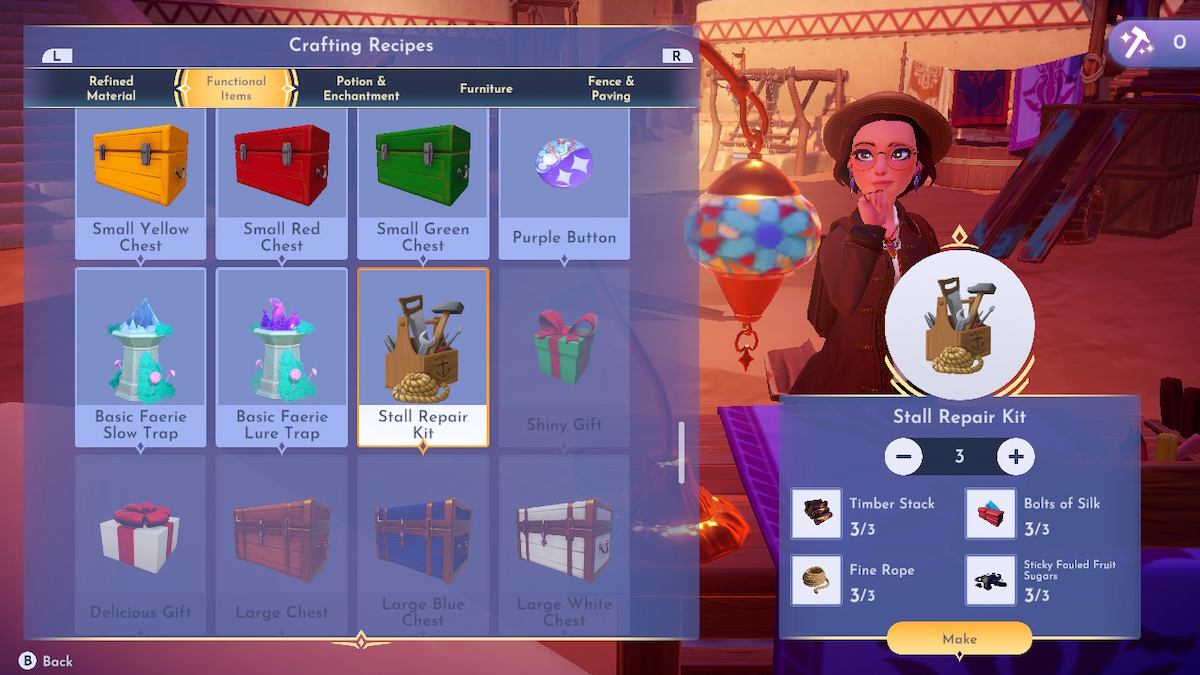 必要な材料をすべて集めたら、任意のクラフトステーションに向かい、3つのストール修理キットを作成します。これらの追加キットを使用する必要がありますの3つの屋台を修正します 中央市場、そしてあなたが修正した3番目のものは、古代の黄色の鍵を市場のリソースバッグの隣の地面に投げ出します。