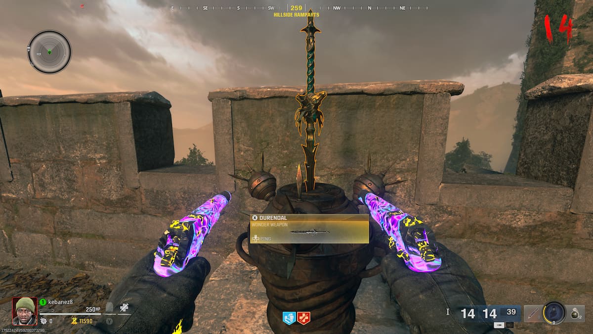 このプロセスを3回繰り返す必要があり、その後、雄犬のろくでなしの剣を内部に配置する必要があります。あなたがチームで遊んでいない場合、それは非常に挑戦的になる可能性があり、メカニズムから離れるとロッドが除去されます。したがって、プロセスを繰り返す必要があります。完了すると、スタッグろくでなしの剣が消費され、見返りに稲妻のスタッグソードデュレンダルが得られます。