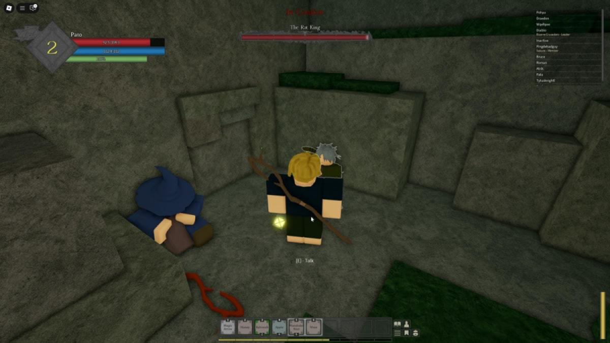 最終的には、上の写真で私がいる場所に到達します。左の矢印はネズミ王への道を示していますが、私はあなたが最初に他の矢印がポイントするところで先に進む必要があります。壁を飛び越えると、見つかりますKevinとYuriの2つの苦しめられたNPCは、角でレストしています(上の2番目の画像を参照)。探検家に相談すれば、彼らはあなたにロストパーティークエストを割り当てます。