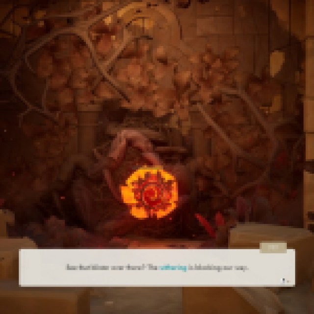降りたら、道をたどると、遺物が見えます。それと対話すると、枯れた腐敗が神殿の周りに広がります。あなたの新しい友人はあなたを苦境から追い出すのを助けます、そしてあなたはあなたが廃inで始めた場所に戻りますが、枯れた腐敗はすでに大混乱を引き起こします。