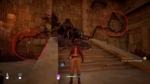 上の最初の画像には、2つの可動域が表示されます。ナフィターでそれらを持ち上げ、その中の枯れを破壊します。画像の右側にあるものにアクセスするには、階段を上って棚にジャンプするか、プラットフォームを探して、Nafitarでプラットフォームを持ち上げます。