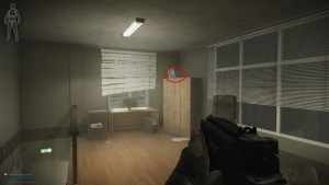 中に入ったら、他のPMCが出口をキャンプできるので、非常に速くなります。建物の中に入ったら、右側の階段に向かいます。上に行くと、テーブルと金庫の横にキャビネットが表示されます。 Sanitar's Surgery Kitは、キャビネットの上にあるフォルダーの1つにあります。