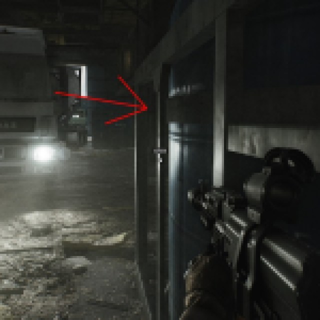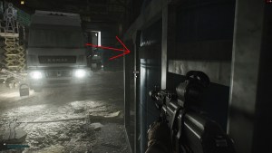 メインエントランス(拠点に近い大きなゲート)に行くと、部屋の真ん中に大きなトラックが表示されます。その前にあるブルータンカーを探して、最初のWi-Fiカメラを配置します。