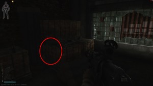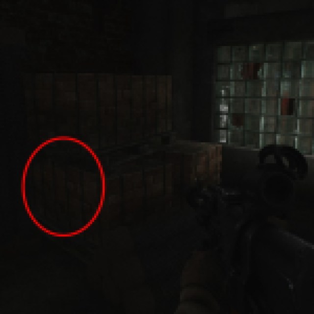 トラックの同じ部屋から、粉砕されたガラスの窓の近くの部屋の角に行きます。オレンジ色の木枠が表示されます。 2番目のWi-Fiカメラを上の場所に正確に配置します。文字通り、「場所」の相互作用が表示されるためにクレートを抱きしめなければなりません。