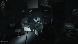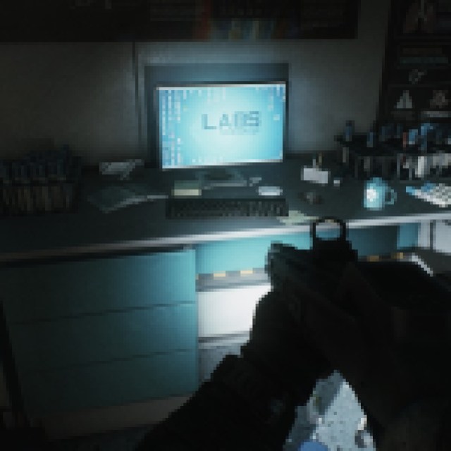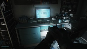 ウイルスサンプルは封じ込めブロック内にあるため、すぐに電源スイッチの近くのコンピュータールームに行く必要があります。コンピュータールームの内側にいると、スポーンはモニターの左側(バイアルケースの隣)またはモニターの右側(デスクの上部)になります。