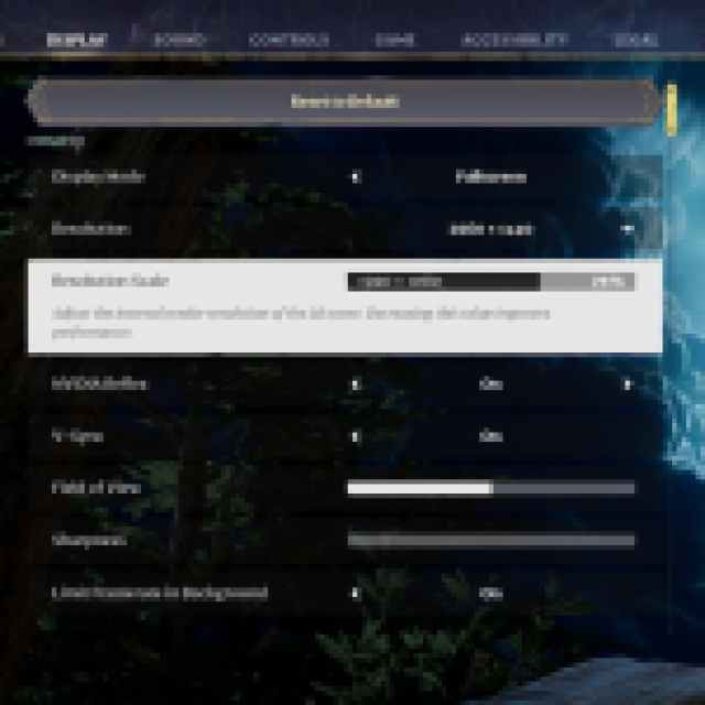 別の紛らわしいデフォルト値は解像度スケールで、75%1440pでプレイしようとしたとき。これは、代わりにゲームが1080pでレンダリングされていたことを意味し、これにより内部解像度が自動的に低下し、出力イメージがぼやけます。