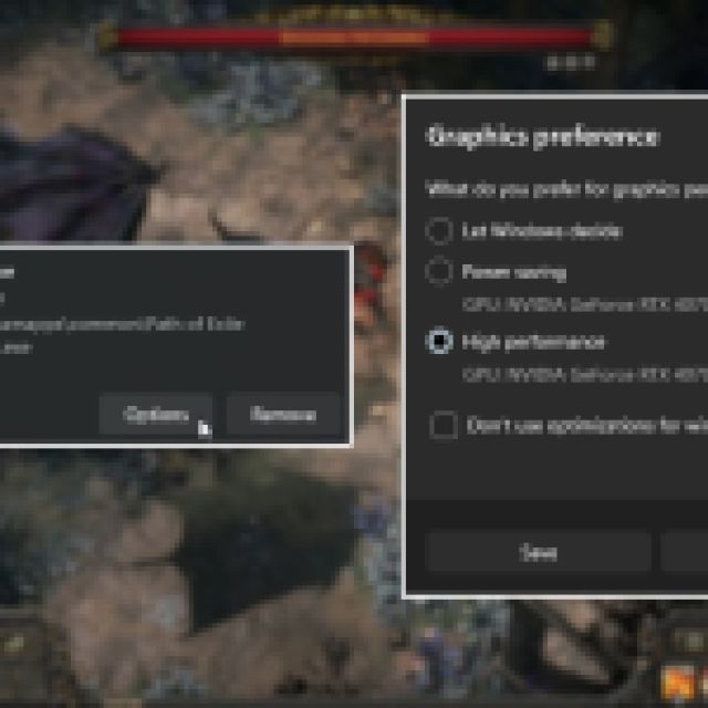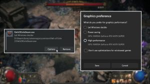 - [選択]を選択しますオプションの下pathofexilesteam.exeWindowsのグラフィック設定メニュー