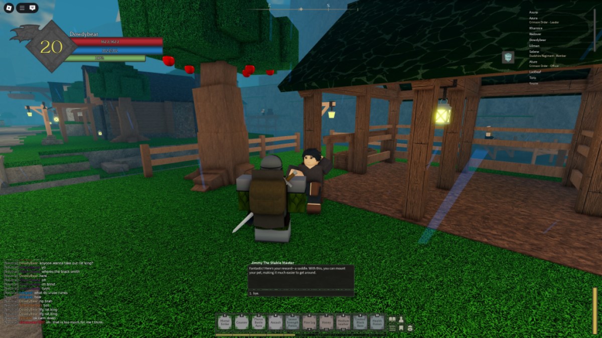 戻ったら、安定したマスターのジミーと話してください(彼の頭に感嘆符があります)、そして彼はあなたにあなたの報酬を与えます:サドル。サドルは在庫に表示されません(おそらく販売したり、誤って失ったりしないでしょう)。