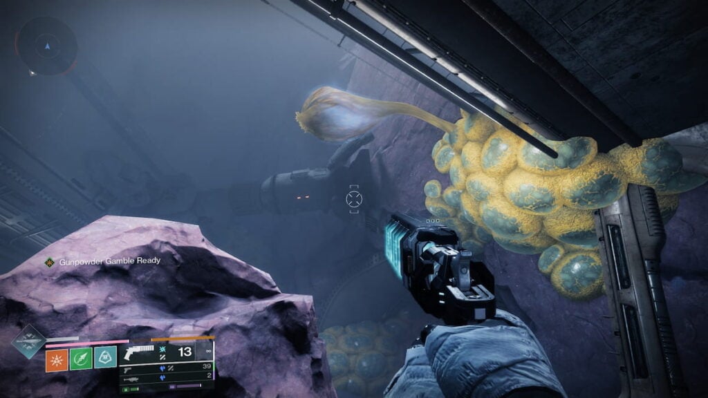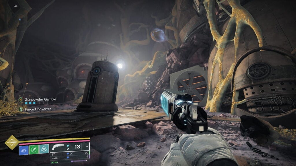 オープンルーム(Dark Academia Questが行われた場所)で、右折してMattersparkポータルを使用します。隣の部屋の終わりには、倒れたすべての部屋の後ろに、ドアの上に花があり、グラビトンスパイクのアークとスタシスモードを使用して撃つことができます。