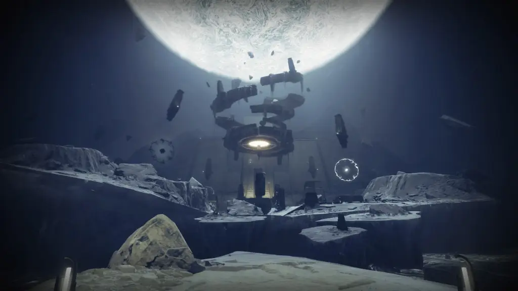 2 つの白いブライトがアリーナの下に浮かんでいます。デストラクトイドによるスクリーンショット