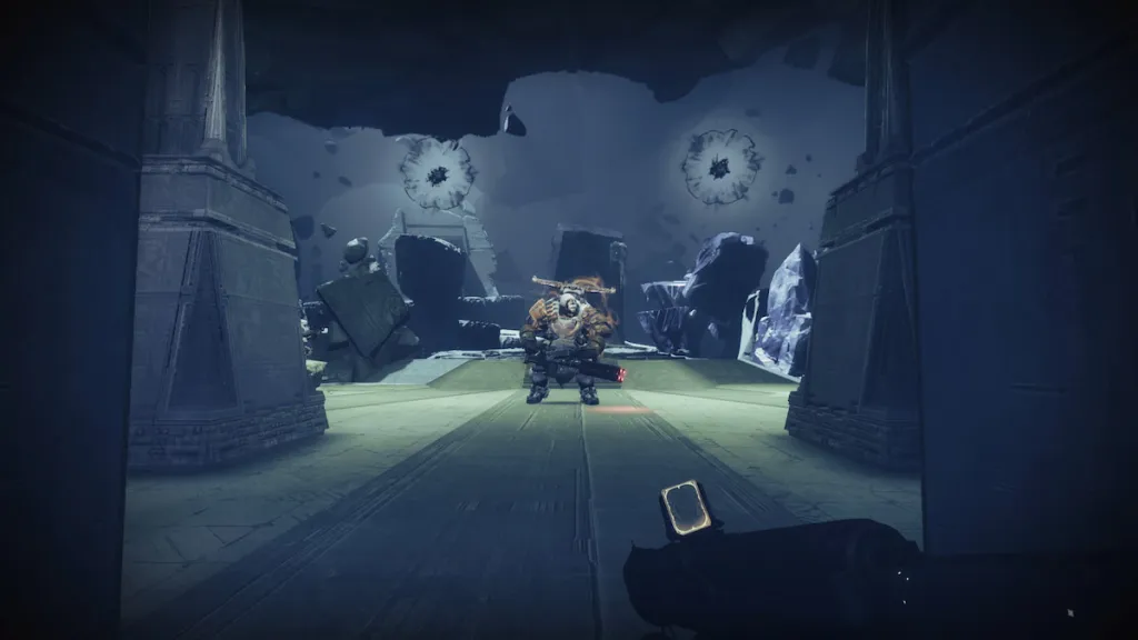 5 番目の奇妙な出来事の直後、溶解するプラットフォームのある次の開けたエリアに到達したら、ホブゴブリンに狙撃され、浮遊する氷河に到達するまで進み続け、別のホブゴブリンがあなたを撃ってきます。 3 つの小さな棚があなたの下と左側にあるので、近くの壁にある X を狙って下に降りて跳弾でブライトを破壊します。ファランクスが出現する場所の下に降りれば、目の前の氷河からも攻撃できます。
