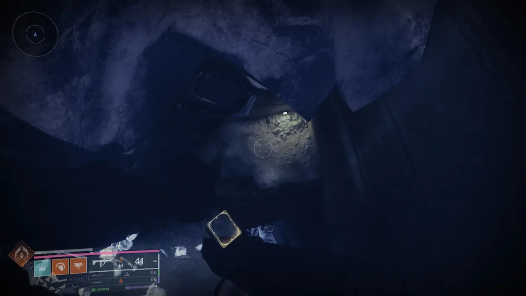 アンバランス オクタントを手に取り、4 つの闇のアーティファクトを撃った後、下の穴に飛び込み、小さな輝く棚を探します。ジャンプする前に端に立っていれば右側にあります。そこから、向かい側の光る棚に向かい、下にバーがあるエリアに到達するまで道をたどります。特別な弾薬が入った木箱を持った氷のブロックに到達し、閉鎖され、消えた壁を探してください。目の前の通路の端まで走って、壁を溶かして反対側にブライトを表示するのにちょうど間に合うように戻ってきます。 Praxic Blade をそれに向かって投げます。着地すると、「7 つの奇妙なもののうち 1 つ」というメッセージが表示されます。