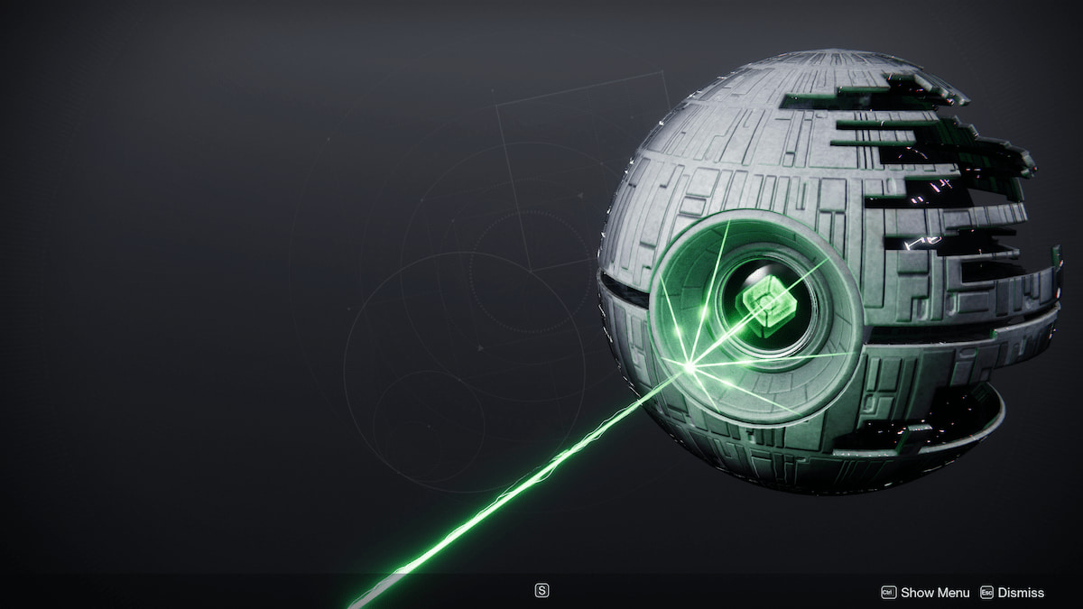 アーマーセットに加えて、スターウォーズのコラボは、他の数匹の化粧品を紹介しています。バンジーはすでに放送中にデススターの幽霊を見せていましたが、ガーディアン人は船とスズメも手に入れることができます。また、フィニッシャーとエモを購入し、はい、複数形で、コレクションを締めくくります。