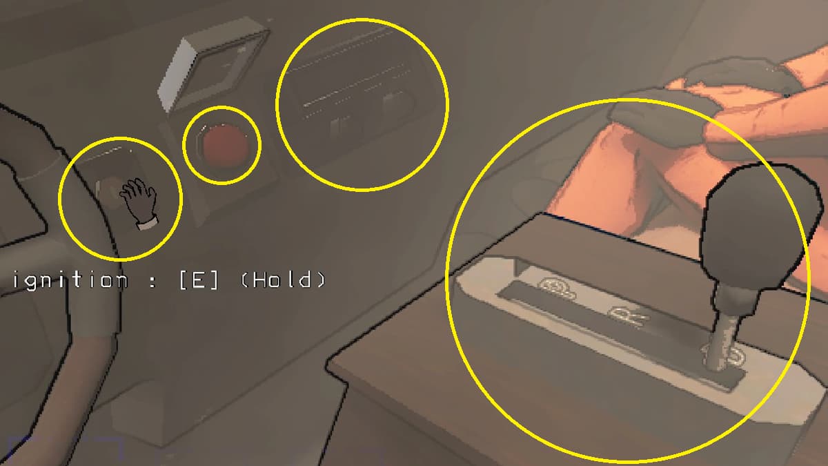 - ハンドルのすぐそばにあるイグニッションスイッチを見て、車のキーを入れて「E」を押します。