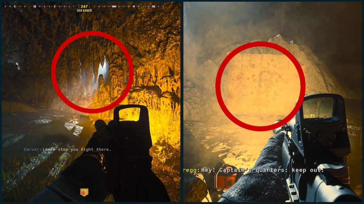 海の洞窟に戻り、トレジャーマップの近くでインタラクション(リロード)ボタンを押します。キャプテングレッグに時計を返したので、マップ上のさらに3つのスポットをマークします。今回は、試合ごとに場所が同じですが、事前に準備する必要があります。少なくとも3人のエリートマングラーと対決する必要があるので、少なくともあなたの武器をティア1にパックすることをお勧めします。それはまた重要です3つのモロトフカクテルがありますあなたと。