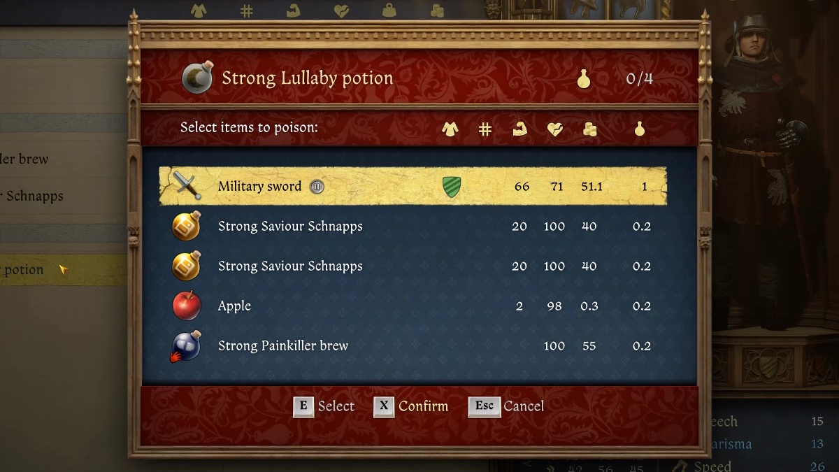 ヘンリーを非公式のウィッチャーにすることはありませんが、ゲーム内の武器に毒を適用することもできます。そうするために、在庫の毒を探してください。毒を強調表示し、「適用」するためにEキー(またはボタン/xボタン)を押します。これにより、毒が入ることができるすべてを示す窓が開きます。武器を選び、「確認」を押して毒を塗ります。