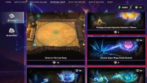 Mythic Medallionsを使用してArcane Jinx Unboundを購入するには、The Treasure Realmsタブの隣の「回転ショップ」タブに移動します。神話のセクションの下では、すべての排他的な戦術家、ブーム、およびアリーナが、秘術またはセット13に提供されるすべての排他的な戦術家、ブーム、アリーナを見ることができます。したがって、アーケインジンクスがバウンドを購入するには、10の神話的なメダリオンが必要です。
