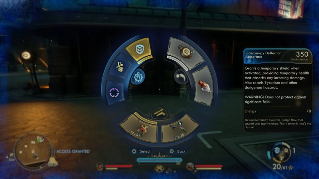 これはプラズマ スラスターと同様のガジェットの 1 つで、これを使用すると、ジラニウムで覆われた場所などの危険なエリアに入ることができます。このガジェットは一時的なシールドを作成し、防御力を強化して、厳しい戦闘に役立ちます。
