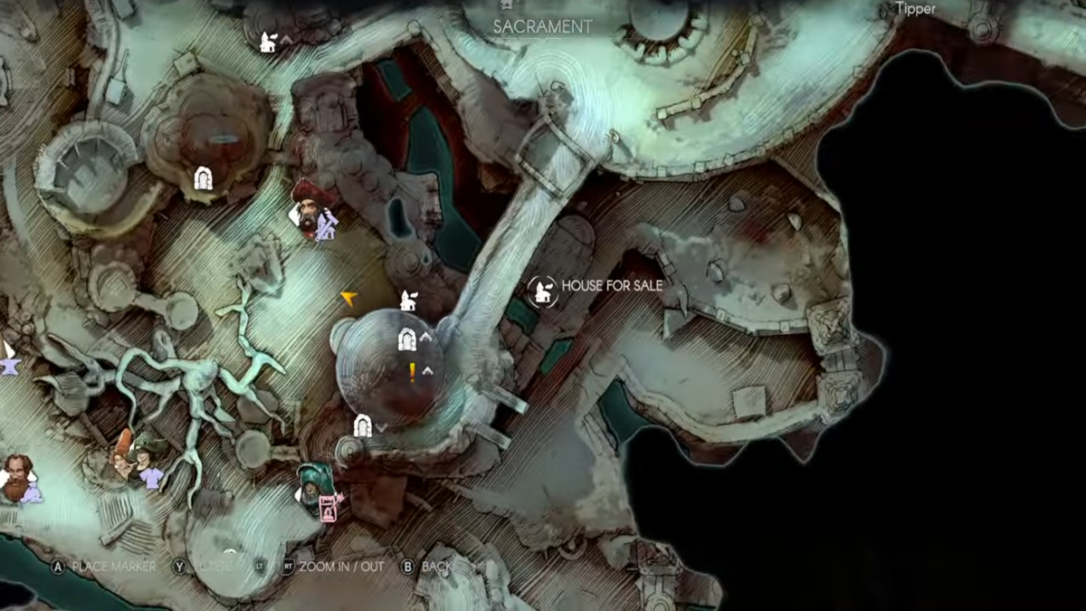 ただし、最初の家を購入するには、邪悪な人のために休むことなく、Rats and Raiders Questを完了する必要があります。このクエストを完了した後、マップを開いて、販売のためにハウスというラベルの付いたアイコンを探します。この場所に移動すると、ゲームは特定の費用でこの家を購入するかどうかを尋ねます。