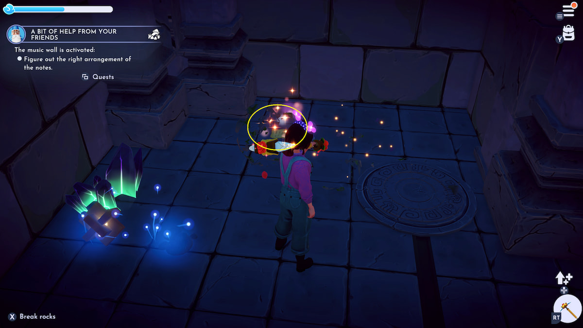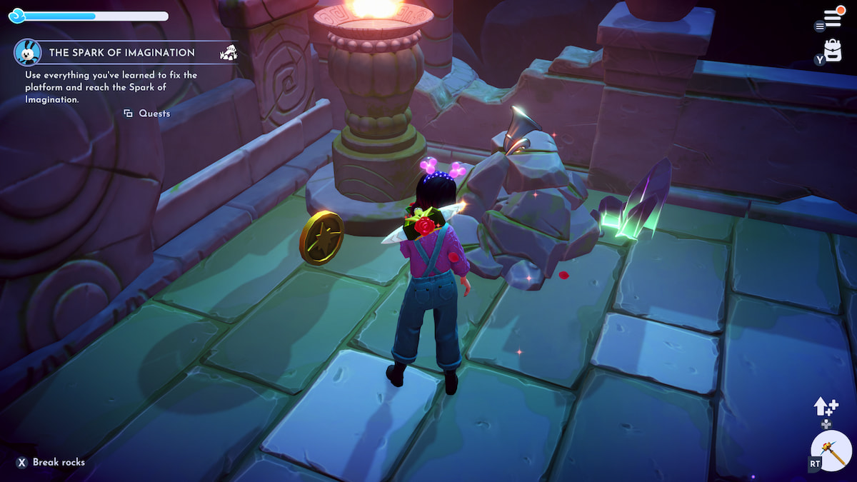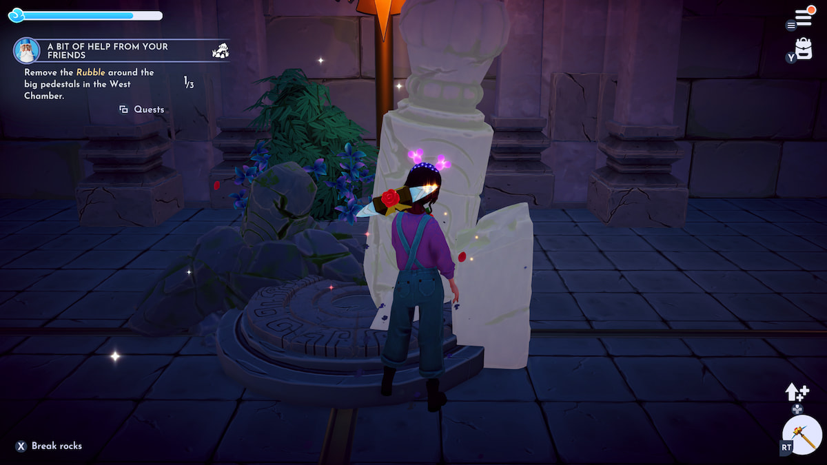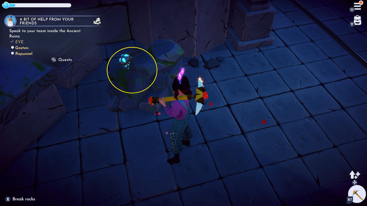 すべてのちらつきができたら、次のステップのためにマーリンに戻ります。あなたはマーリンとの縮んだ遺跡に挑戦します。ここで、マーリンは3つの部屋の簡単なスナップショットを撮るように頼みます。次に、メインクエストのために完了するために3つのサブクエストを獲得します。あなたの友達から少し助けてください。」これらの3つのクエストでは、縮んだ遺跡の各チャンバーに対応するラプンツェル、ガストン、イブのクエストを完了する必要があります。