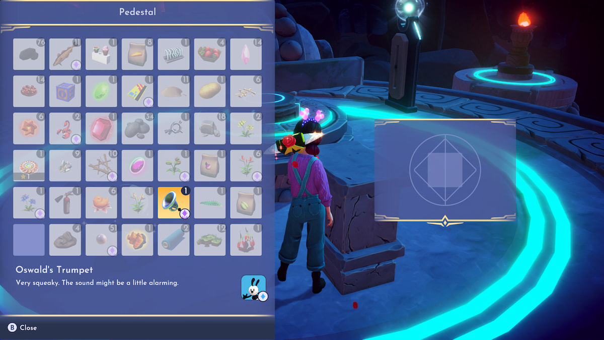 - 12。プラットフォームの中央ホイールの横にある石の台座にホーンを置き、それと対話してオズワルドに別の感嘆符を落とします。