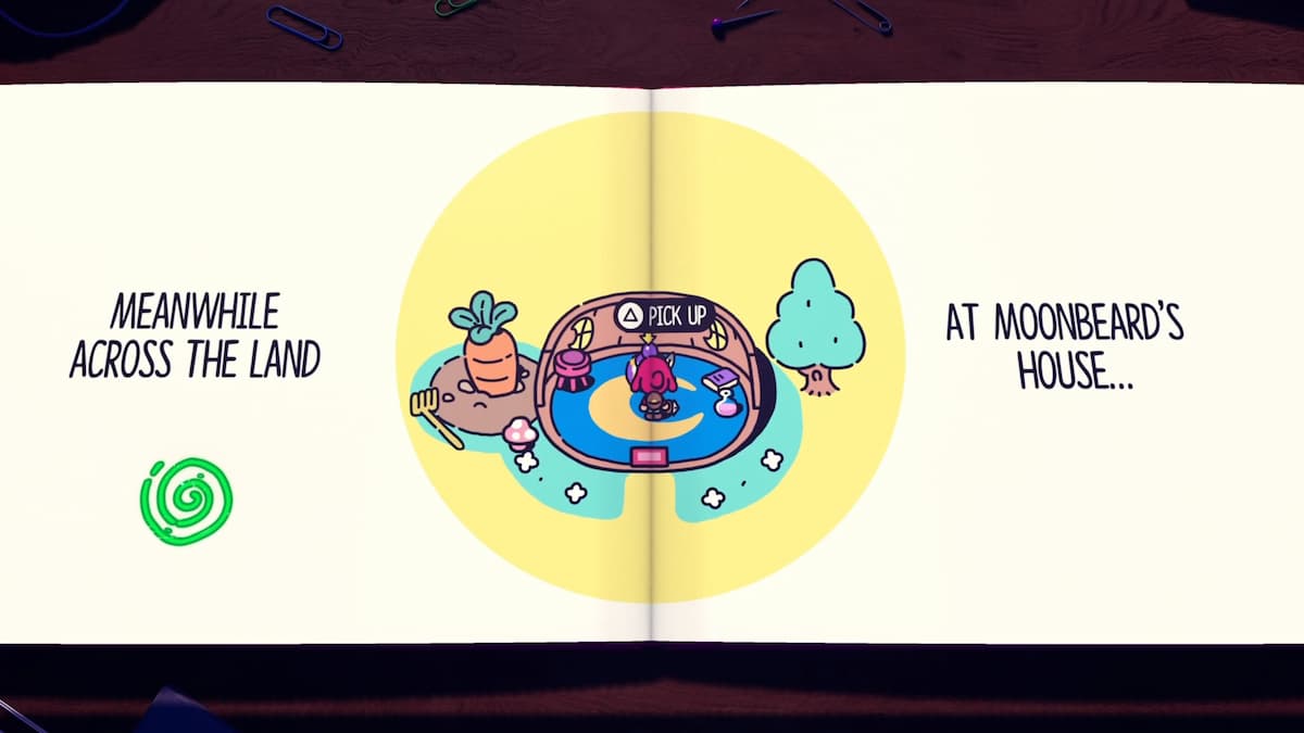 アイアンウィードで入り口で閉まっている洞窟に出くわします。ムーンビアードの家(3ページ後)に向かい、除草剤の爆弾を手に入れます(はい、奇抜な魔法使いには彼のリビングルームの床に1つの敷設があります)。