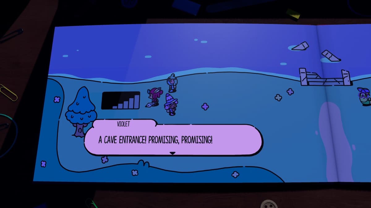 あなたは橋の反対側の洞窟から出て、ジョットと共同を持ってきます。本の塔に一歩近づきます。すぐに小さなヒーロー!
