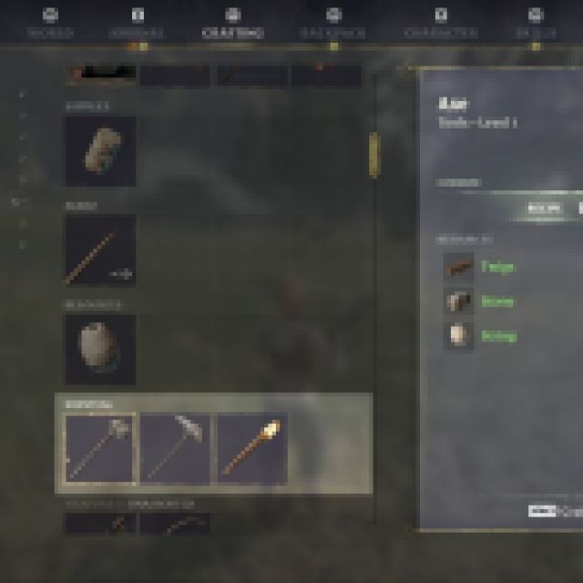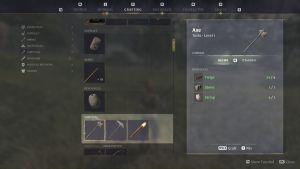 すべての素材を手に入れたら、を探してくださいaxオプションあなたのクラフトメニューで、木を切り倒して集まるメニューを作ります木製の丸太、樹脂、 そしてその他のリソース。