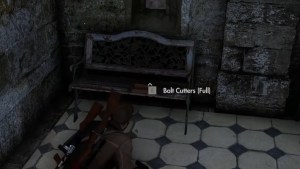 1階に着いたら、ナチスの兵士を殺してエリアを歩き回ります。同じ領域に、ボルトカッター入り口のすぐ右側のベンチに。ボルトカッターを拾い、内側に向かいます。ロックされた金属製のドアが表示されます。これは、ロックのロックを選択したり、ボルトカッターを使用して開いたりすることができます。