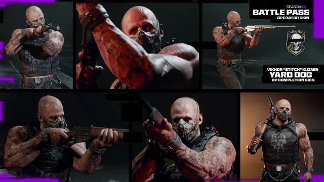 パスを完了すると、別のステッチスキン「ヤードドッグ」のロックを解除します。これには、ブラックセルバリアントも付属しています。これは彼のマスクに威ac的な笑顔で黒で彼を服装します。