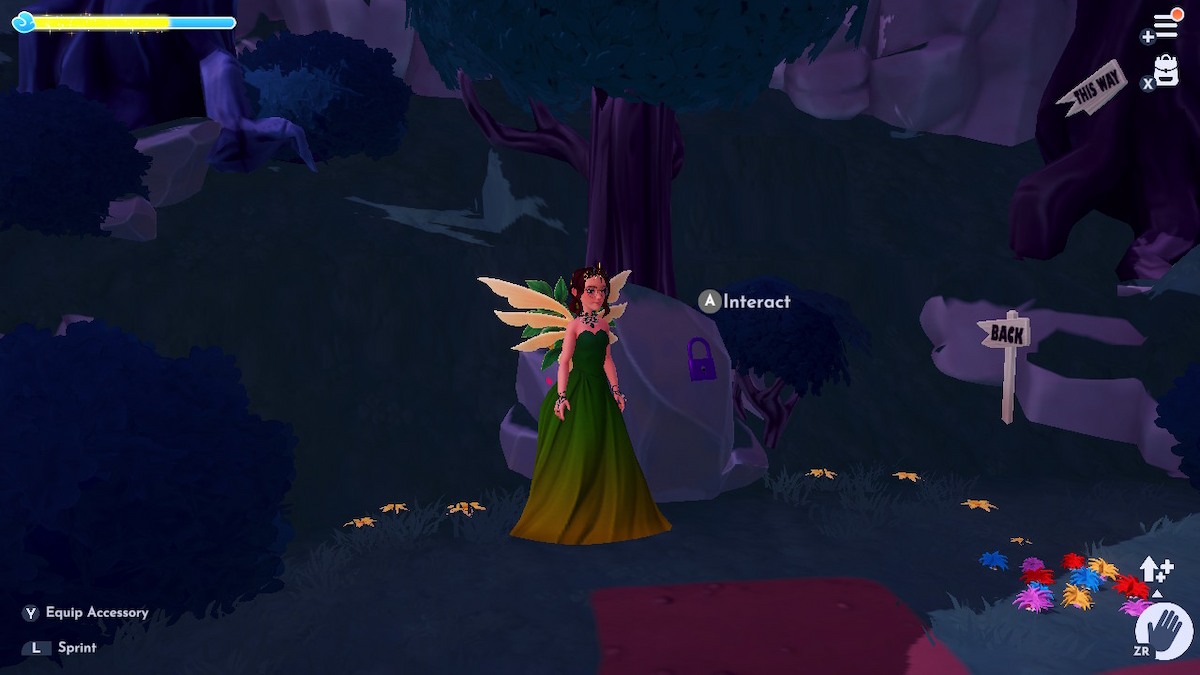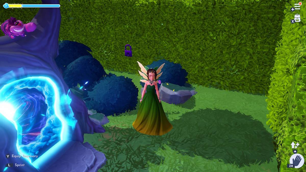 反対側のツリーポータルの後ろに、生け垣の紫色のロック。それはあなたが出くわす最も簡単なロックであり、あなたの独特のキーで開くのはあなたのものです。奇妙な鍵を集めて、あなたは行きます!