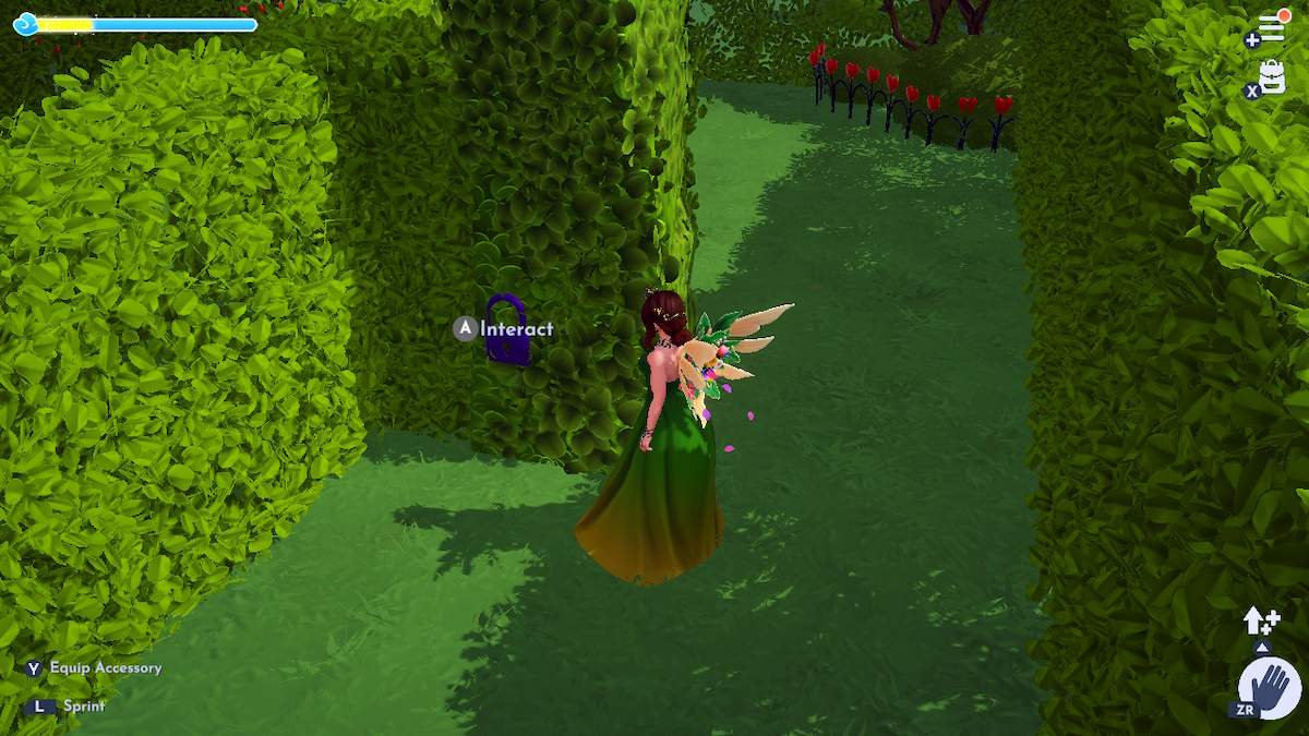 - に左パスの側面、aがあります背の高い生け垣あなたがそれに近づくと、それは後退します。レバーをトリガーしますあなたがしたらその背後に。