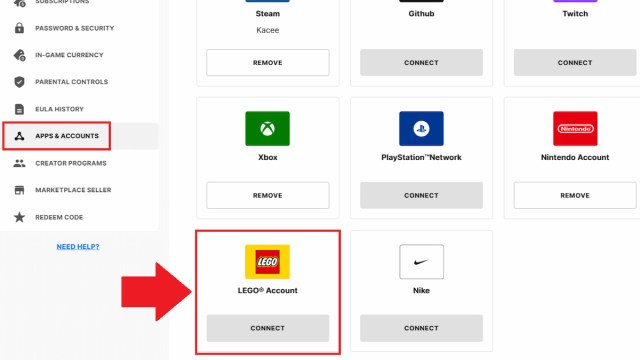 にダッペルミントさんのスキンを手に入れましょうレゴフォートナイトでは、そうする必要がありますレゴおよび壮大なゲームアカウントを接続します。すでに接続している場合は、追加の努力なしでこの肌のロックを自動的に解除できます。