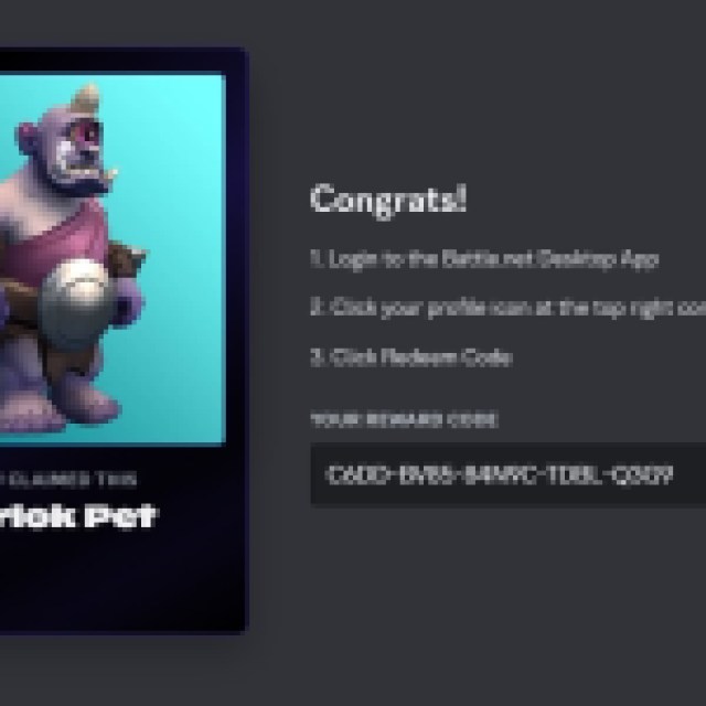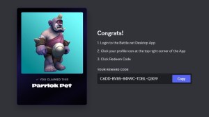 手順に従って、報酬コードをコピーします。 battle.netデスクトップアプリのredeemコードウィンドウに報酬コードを貼り付けます。手順に従い、ペットを請求します。
