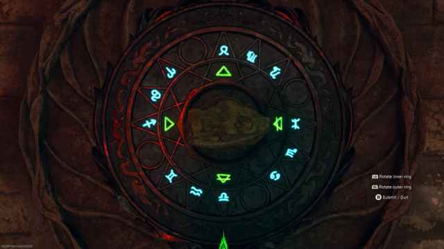 3つのオーブをサークルに正常に導くと、消えます。表示される小さな紫色の円に従ってください次の場所で、オーブをリードするプロセスを繰り返します。 3つの領域でこれを行ったら、居酒屋の地下室の壁のパズルに戻ります。