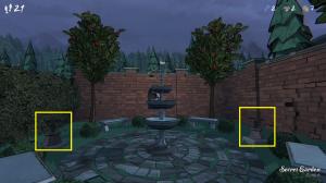 ブループリンスの秘密の庭のパズルを解決するには、部屋に入った後、噴水に行きます。噴水になったら、ランダムな方向に向けて方向性のあるスティックをいくつか持っているはずです。あなたの目標は、それらをすべて北方向に向かわせることです、最小の方向のスティックはすでに北に向かっているはずであり、あなたはそれを動かすことができません。媒体と大きなスティックを動かすには、噴水の側面の地面に回転ホイールを使用する必要があります。