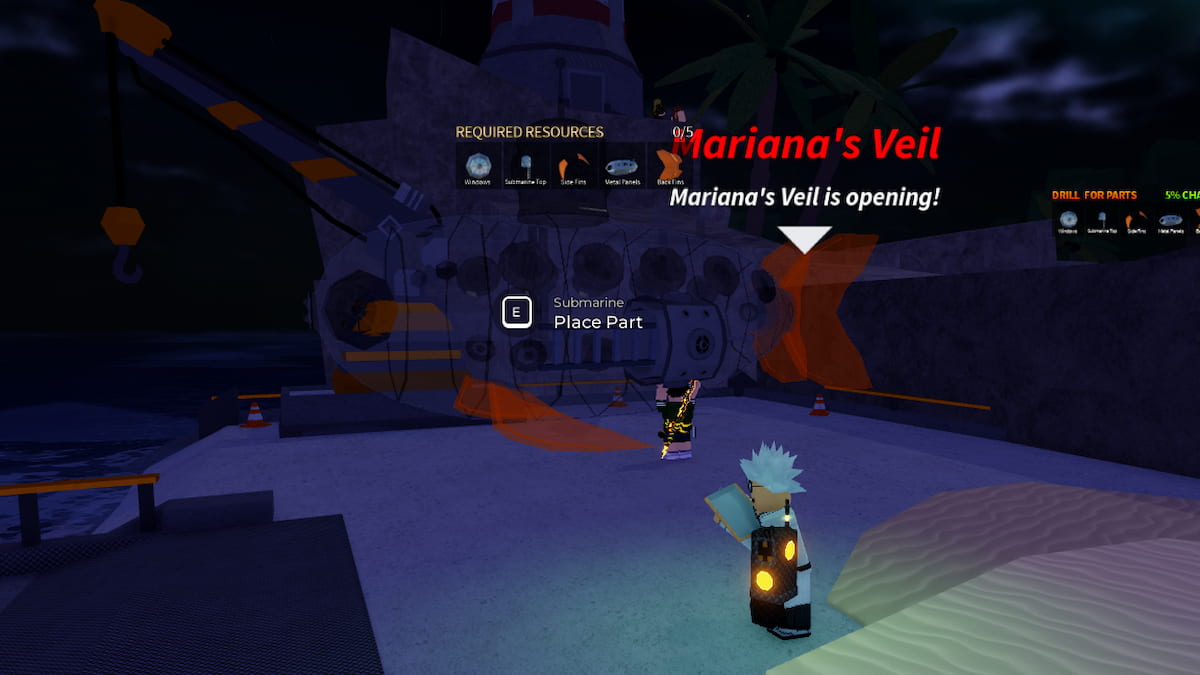 会話の最後に、タスクバーやバッグから装備できるドリルが提供されます。潜水艦を作成するために必要なリソースまたは材料を以下に示します。