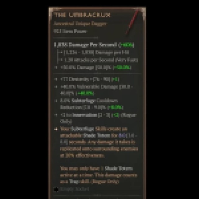 キャラクターの力が少し強い場合は、悪夢のダンジョンに行って、できるだけ早く仕上げることができます。最終的なボスは、伝説的な武器などの素晴らしい戦利品を常に落としますが、時々ユニークなアイテムドロップを見つけることがあります。 Nightmare Dungeonsの最高層を介して破壊し始めると、ユニークを見つける方がはるかに簡単になり、最終的にはUmbracrux武器が見つかります。このアイテムをドロップするには、ローグを使用する必要があることに注意してください。