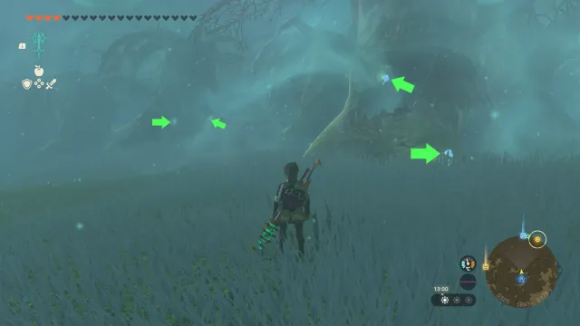 コロックの森から空に到達する最も速い方法は、Thyploはグレートプラトーの北にあるスカイビュータワーを台無しにします。空になったら、霧のパッチを探してください輝く緑色の光。これはです忍者 神社、それは私たちが行く必要があるところです。すでにこの神社のロックを解除している場合は、この時点まで速く旅行してください。