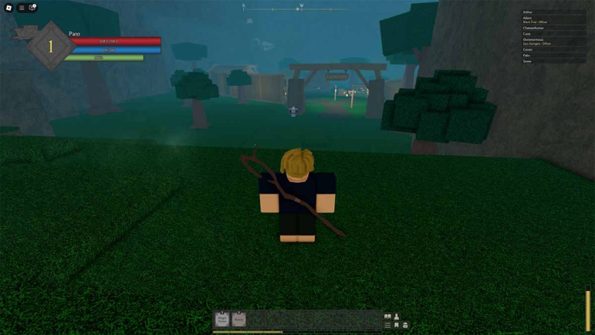 Lakeshireの町には、追加のアイテムを保管するストレージ、スポーンポイントを設定する宿、クラフトテーブル、炊飯器などの他の基本的な設備もあります。村の遠端には、NPCローランドが操作するエレベーターがあります(上の画像を参照)。彼に電話をかけるように頼み、すぐに飛びます、そしてあなたはに連れて行かれます騎士のテンプラー。アクセスすることもできます獣のキャンプそこから、ヴァンガルのボスと戦うためにデュアル武器スキルブック。