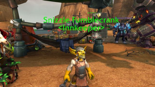 直接のサイレンアイルベースの宿屋はゴブリンと呼ばれるゴブリンですSpingle Fumblecrank、飛行船が立ち上がる場所のすぐ前に見つけることができます。ハースストーンなしでサイレンアイルに戻るのはまだ迅速かつ簡単ですが、テレポートできることで、ランニングクエストははるかにスムーズになります。