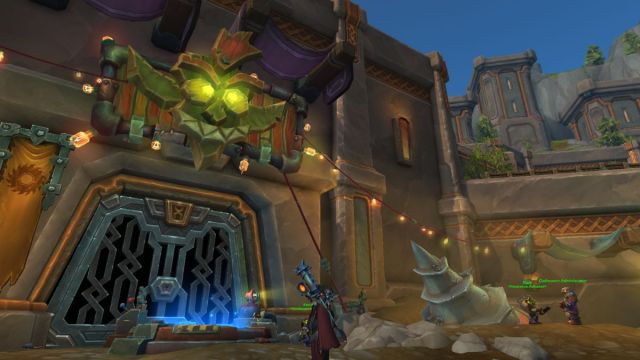 また、Undermineのアクションにまっすぐに戻りたい場合は、Dornogalのテレポーターにアクセスできるようになります。それは、輝く光と木製のゴブリンの看板で示されているゴブリン市のテレポーターと同じように見えます。