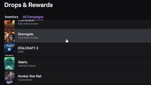 その後、あなたは行くのが良いです、そして、あなたはストームゲートのために有効になっているドロップを備えた任意のストリームを選ぶことができます。必要な時間を視聴した後、ドロップセクションに戻り、報酬を主張することができます。