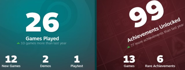 プレイしたゲームとその年にロック解除した成果は、以下のように前年と比較されます。