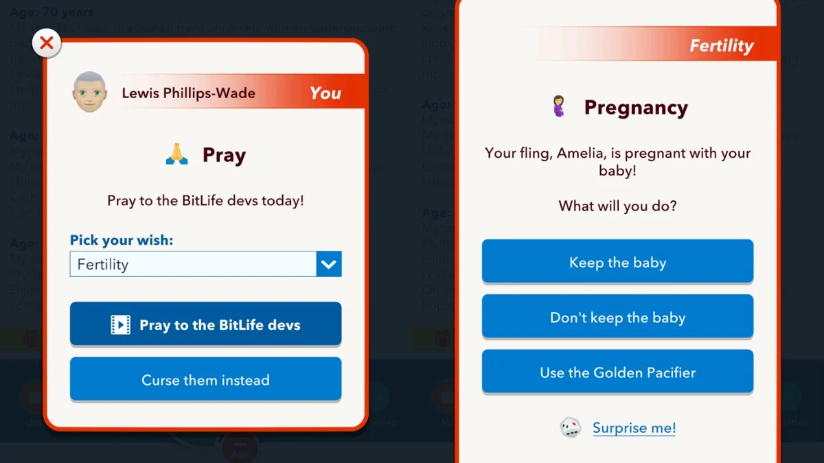 BitLifeは、運と状況を使用してキャラクターの人生の出来事を決定することで、実際の生活を反映しようとすることがよくあります。これは確かに、双子やトリプレットを妊娠する場合に当てはまります。これは、実際の生活と同じくらい珍しいことです。ただし、BitLifeに双子を持つ可能性を高めるために、いくつかのことをすることができます。