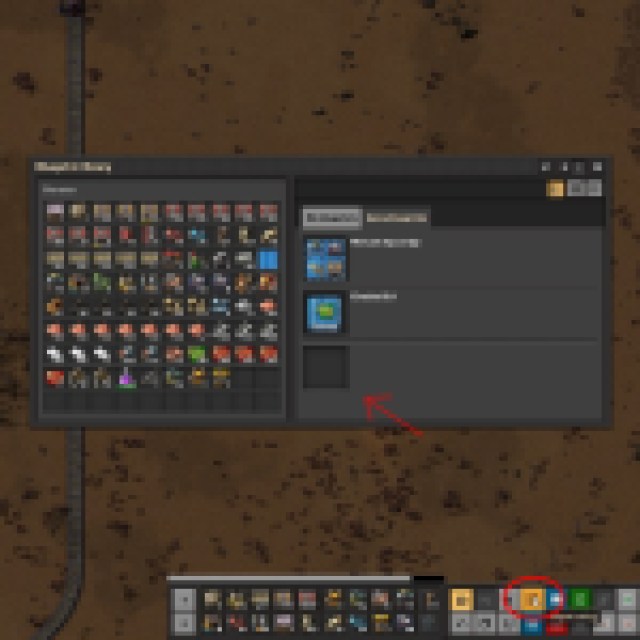 コードがクリップボードに入ったら、ファクターを開いて保存したゲームをロードします。 「B」を押して、BluePrintsライブラリを開き、HotBarのインポート文字列アイコンを探します。上の画像に囲まれているのがわかります。ボタンをクリックすると、コードまたは文字列を貼り付けることができるページが開きます。