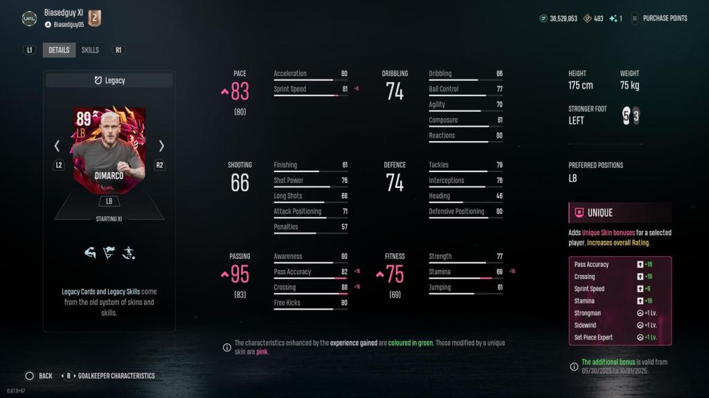 ただし、ブーストは一時的なものであり、特定の属性にのみ適用できます。スクリーンショットで私のDimarcoカードを確認すると、その防御は89の定格LBの防御ではなく、ブーストは最終的に消えます。これは、ブーストが永続的であるシーズン内のカードには当てはまりません。レガシーカードは、リンクアップ効果の対象とはなりません。これは、覚えておくべきもう1つの重要なポイントです。