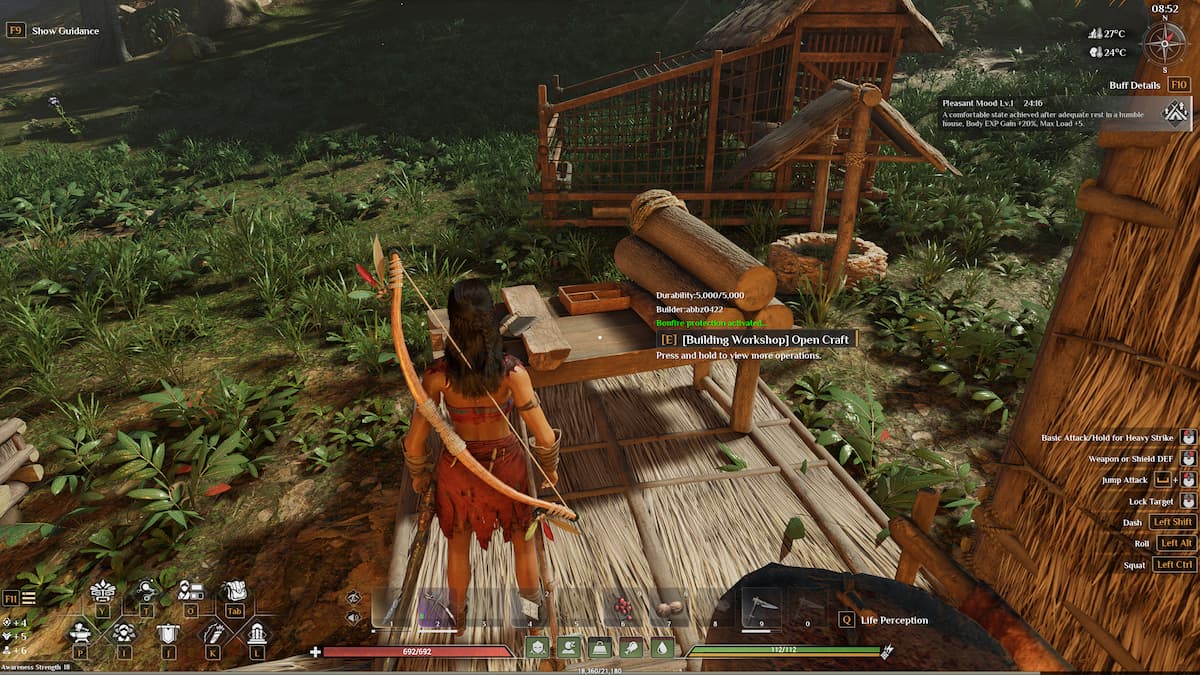 キャンプの快適レベルを上げるための最初のステップは、より良い構造を構築することです。たとえば、サッチベースは、石のベースほど快適なレベルの高さを持っていません。ベースがより強く、より安全であるほど、快適さが高くなります。より良い構造のロックを解除できます知識と技術メニュー。