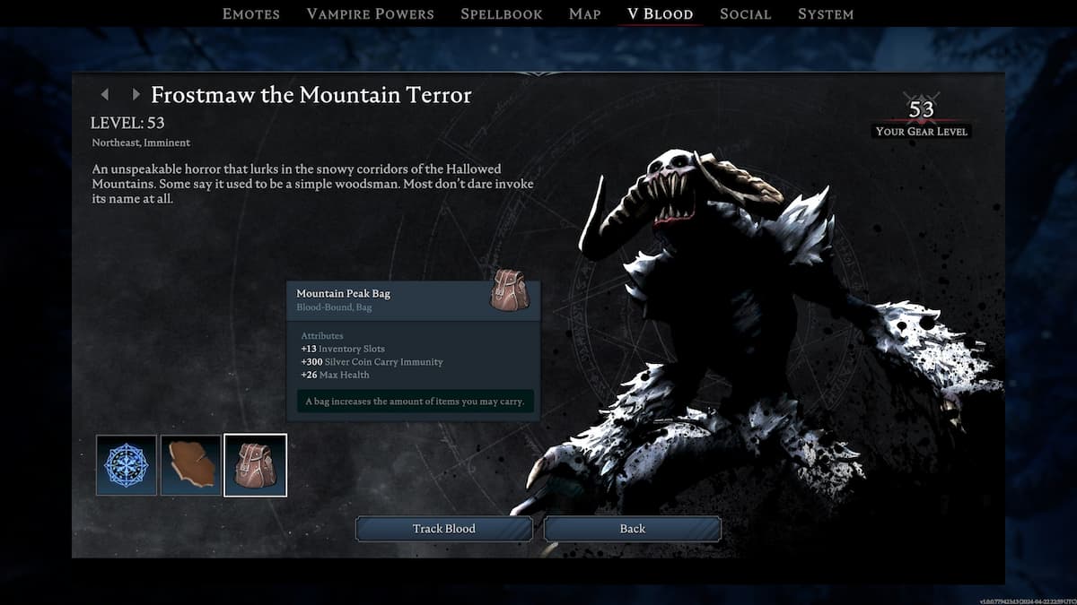 - マウンテンピークバッグ:+13インベントリスロット、+300シルバーコインキャリー免疫、+26 Max Healthを追加します。