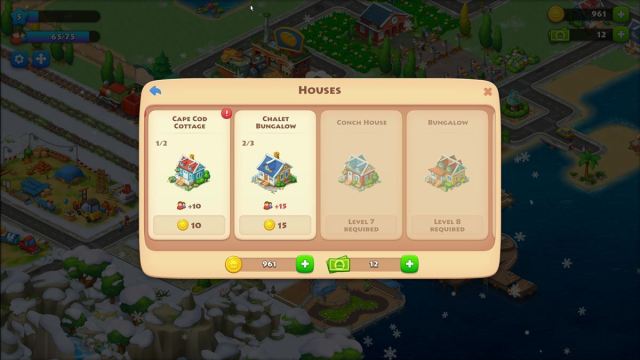 そもそも、あなた基本的なコテージ利用可能です。レベルアップするにつれて、より多くの家のロックが解除され、町の能力が向上します。
